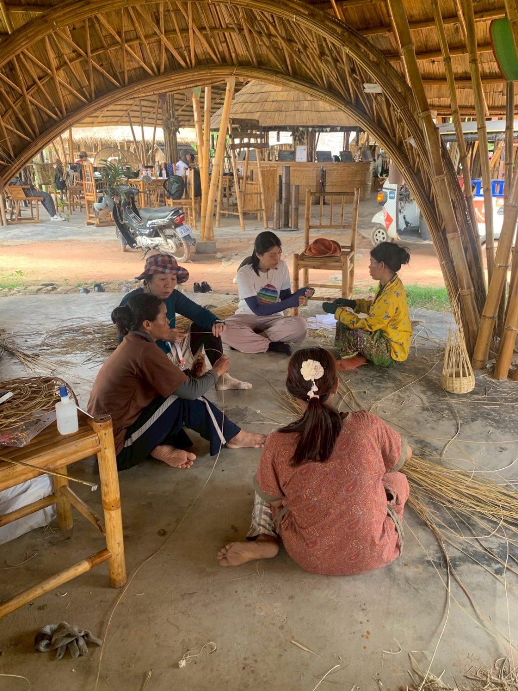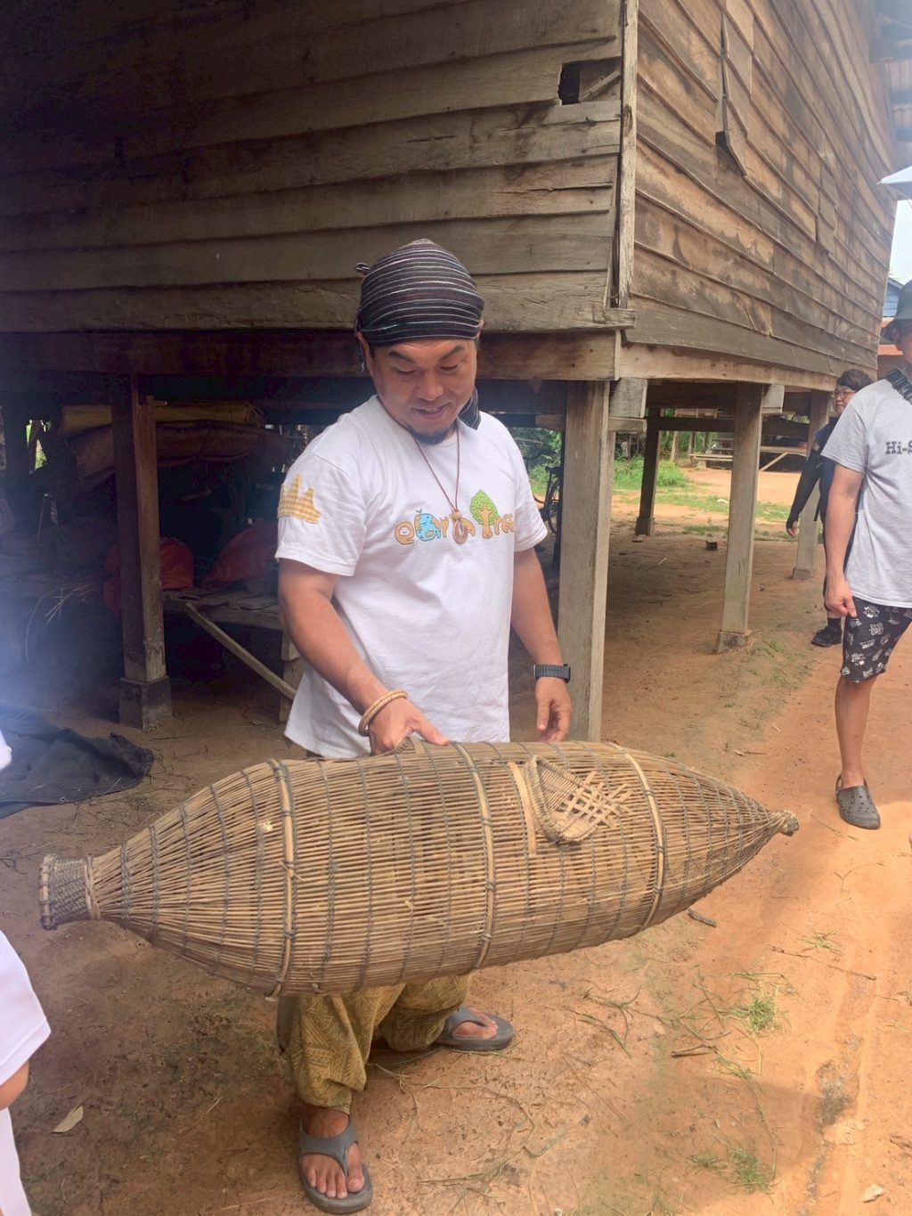 竹でできた学校や宿泊施設を建設する団体を訪問し、子どもたちと交流した後、村の暮らしを見学しました。ゴザや罠を手作りし、家畜を食料として活用するなど、自給自足の生活が営まれていました。