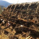 ●棚田の風景画美しい八重治集落にある茅葺学校にて「茅葺屋根の葺き替えボランティア」に参加